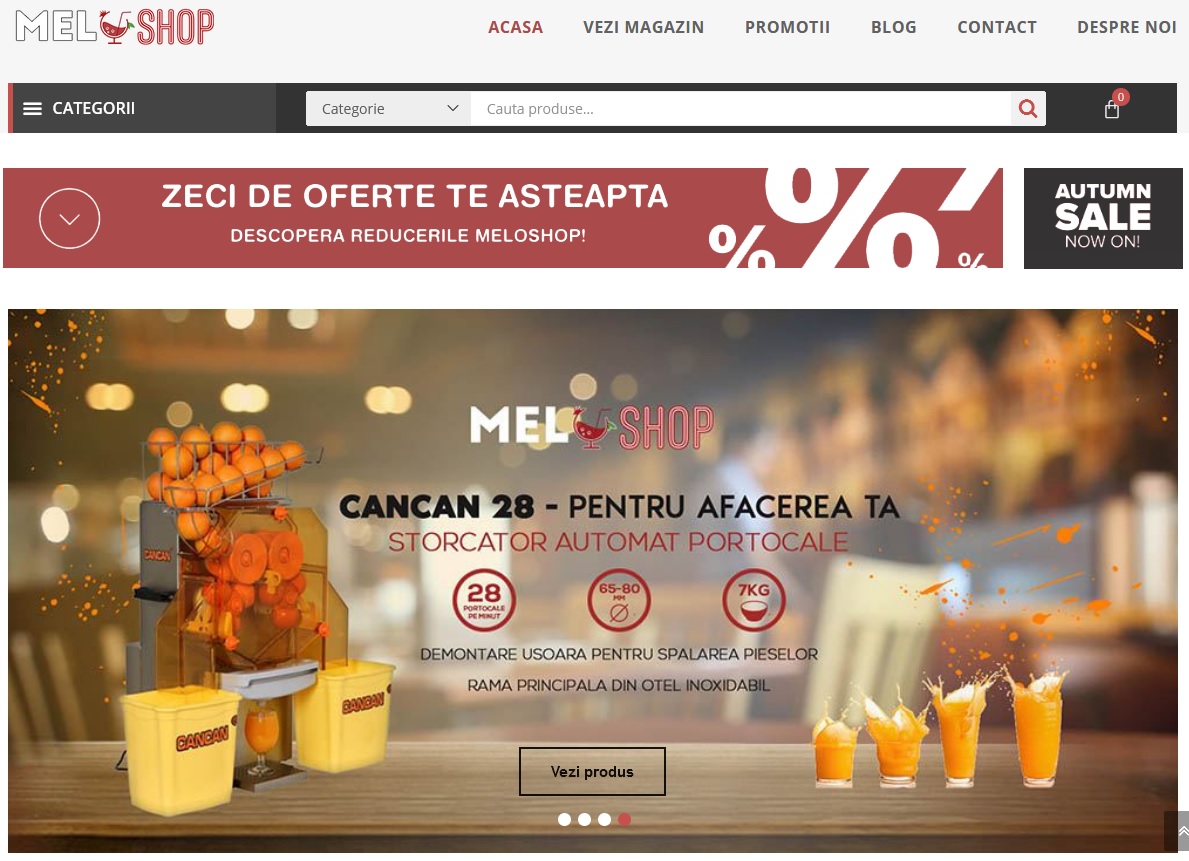 Unul dintre cei mai mari furnizori de echipamente Horeca este Meloshop, un magazin oline cu promotii. De aici poti cumpara un storcator de fructe manual sau un storcator de fructe automat.